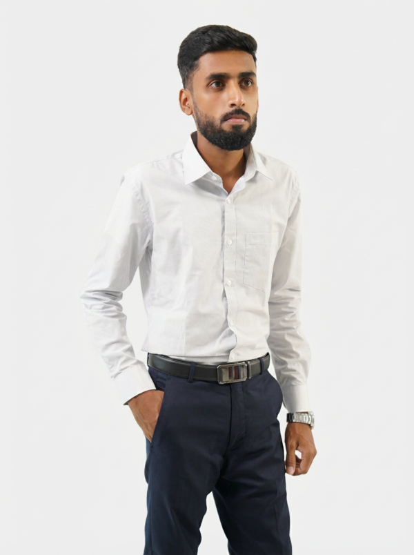 This white shirt is a must-have for every man’s closet. It is made from high-quality cotton that feels smooth and stays comfortable even when you wear it for a long time. The design is simple and smart, with a neat collar and a handy front pocket.